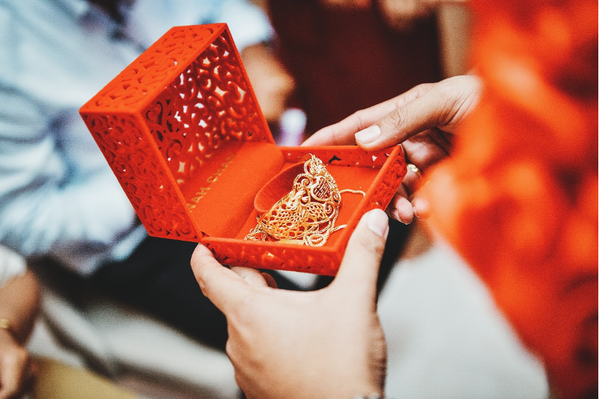 - 聘禮清單:過大禮時,聘禮內容依據不同地方風俗而有所不同。通常聘禮包括金銀首飾、禮金、豬肉或魚乾等,男方應提前與女方溝通禮品需求,並準備相應的禮品。女方則需要準備回禮,這些回禮通常也會有相應的吉祥物品。